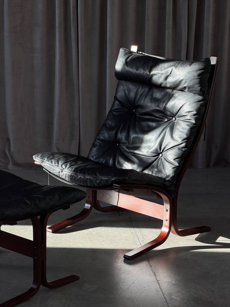 Sessel mit Hocker - Vintage - Echtleder - Mahagoni